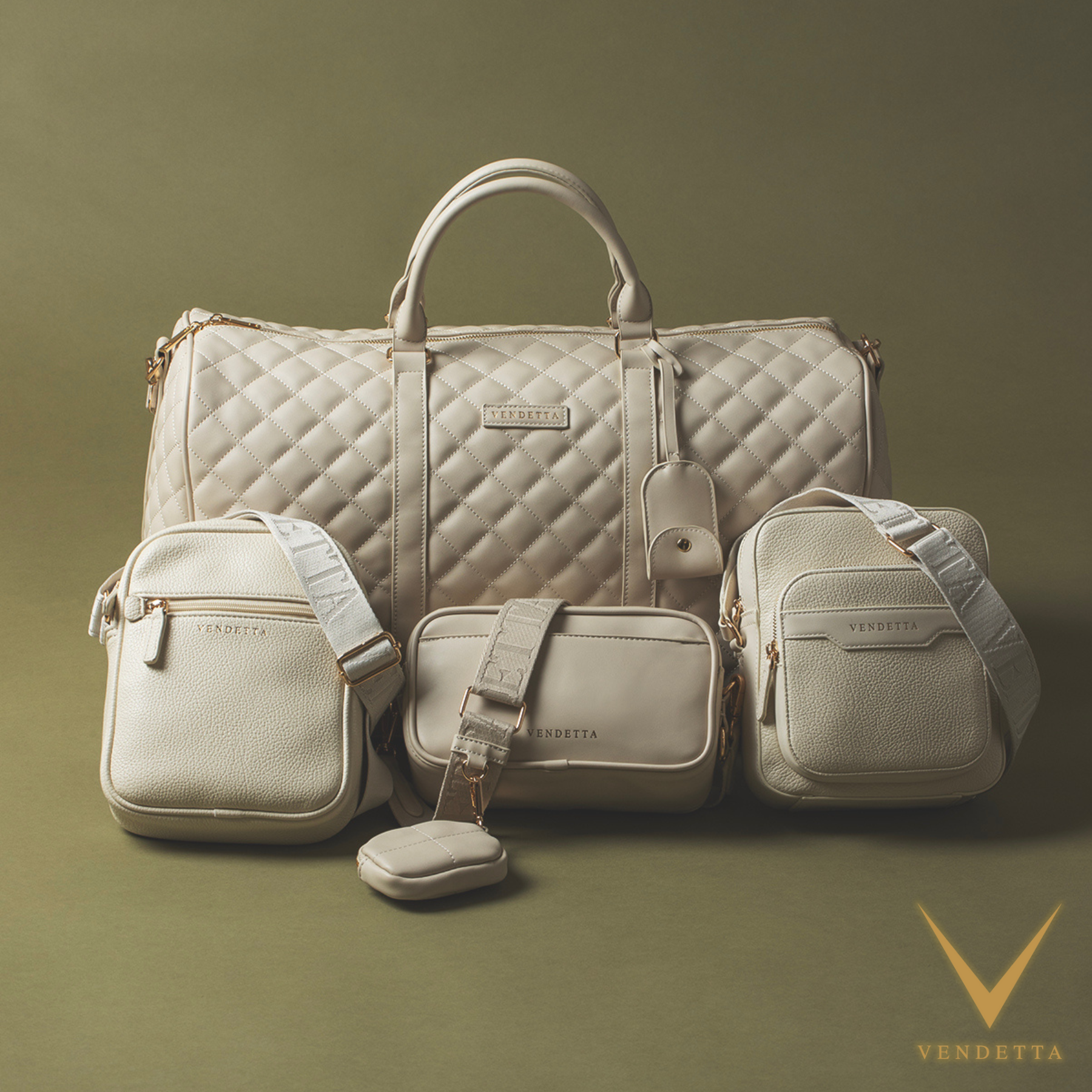 Beige reimagined. A curated collection of quilted duffles, cross-bodies, and everyday essentials — designed in a soft neutral tone and finished with polished metal accents.